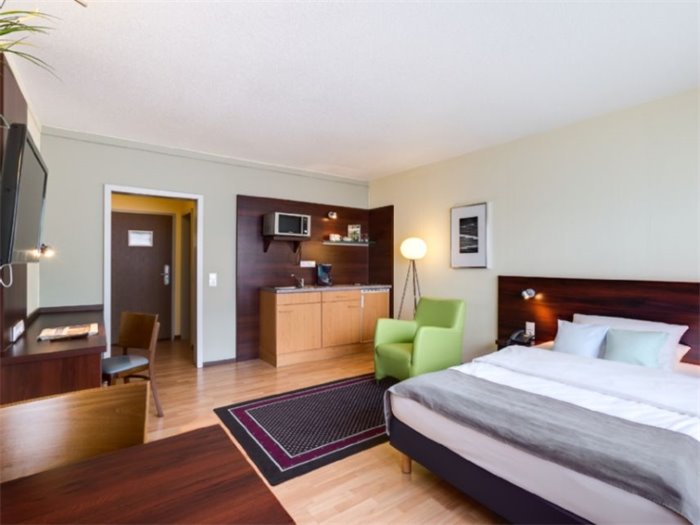 Unsere 110 Zimmer haben eine beachtliche Größe von 32 qm. Die Zimmer sind hell und freundlich eingerichtet und verfügen alle über eine große Fensterfront, großzügigen Arbeitsflächen sowie einer Kaffeemaschine.